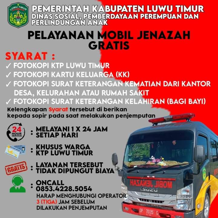 | Judul | Pelayanan Mobil Jenazah Gratis Dinas Sosial Pemberdayan Perempuan dan Perlindungan Anak Tahun 2024 |